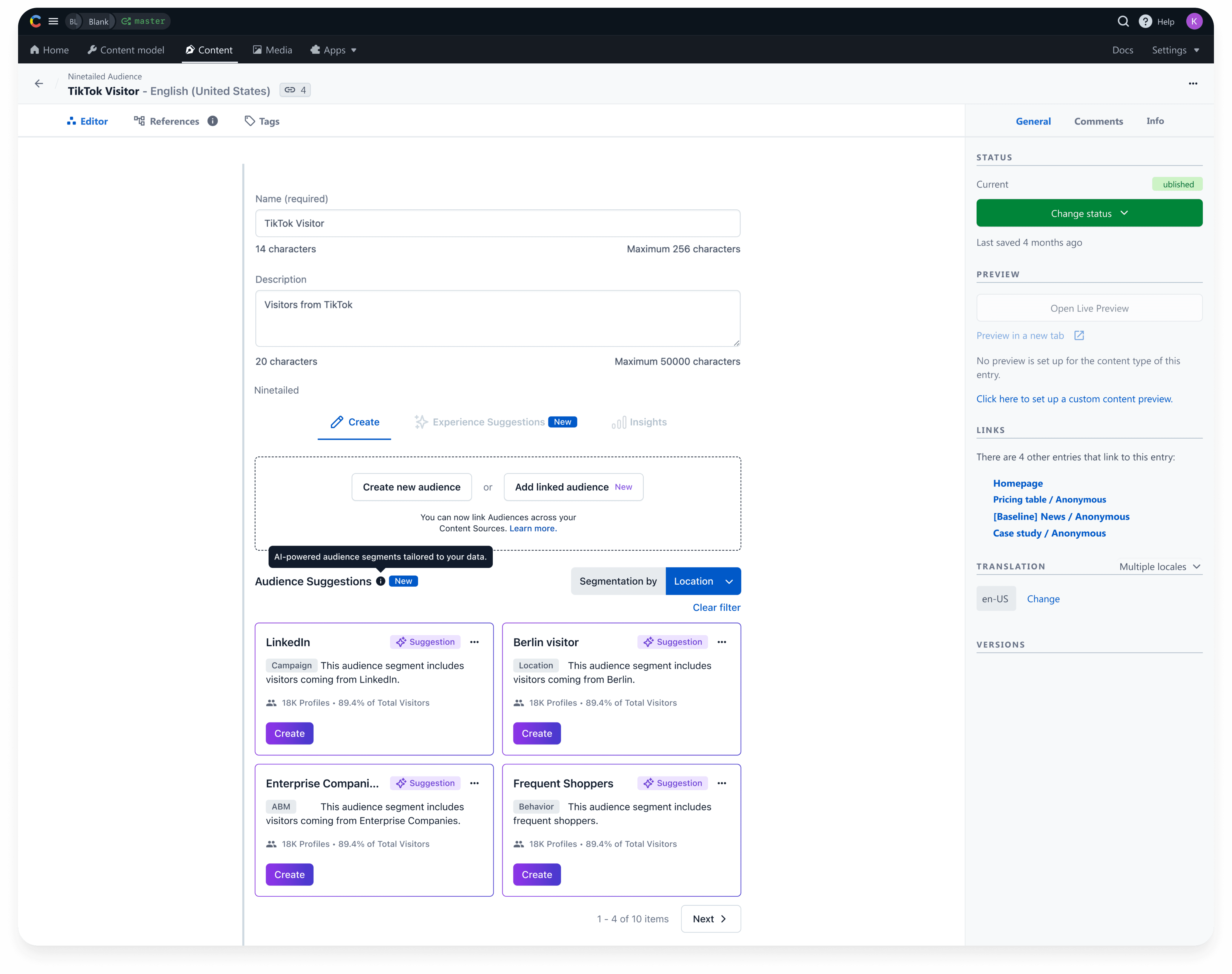 Ninetailed (acquired by Contentful in 2024) is the leading personalization and experimentation technology that empowers brands to understand their audience and create, deliver, and test tailored experiences.