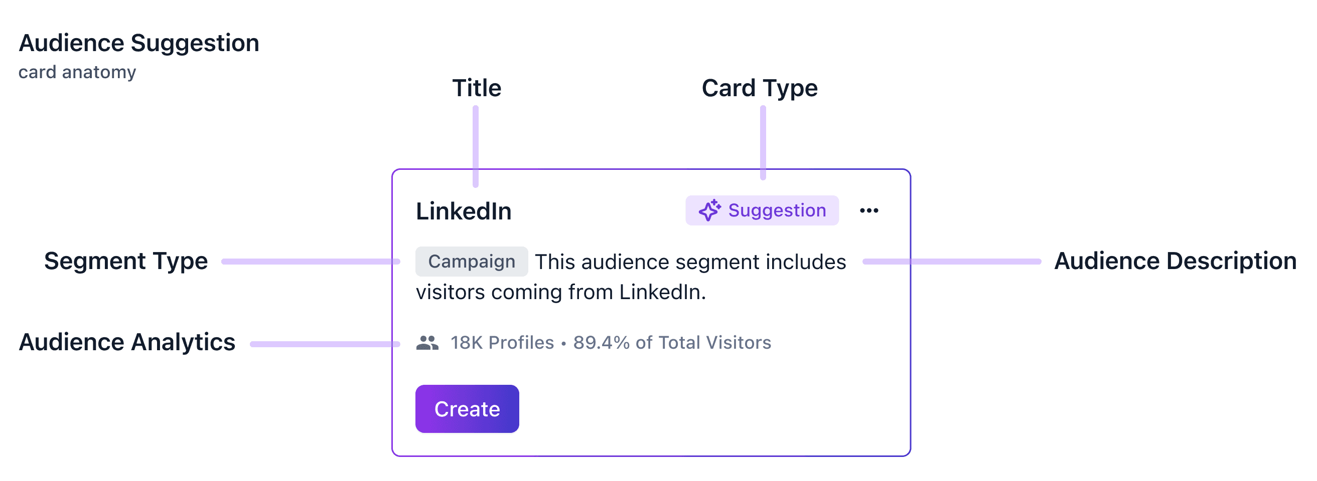 Experience Suggestions are designed in a way to merge all key fields of a personalization or experiment page into one card. By utilizing advanced AI algorithms, Experience Suggestions analyzes an array of data points, including user behavior, demographics, and first-party data to provide the best possible experience for the specific audience segments.