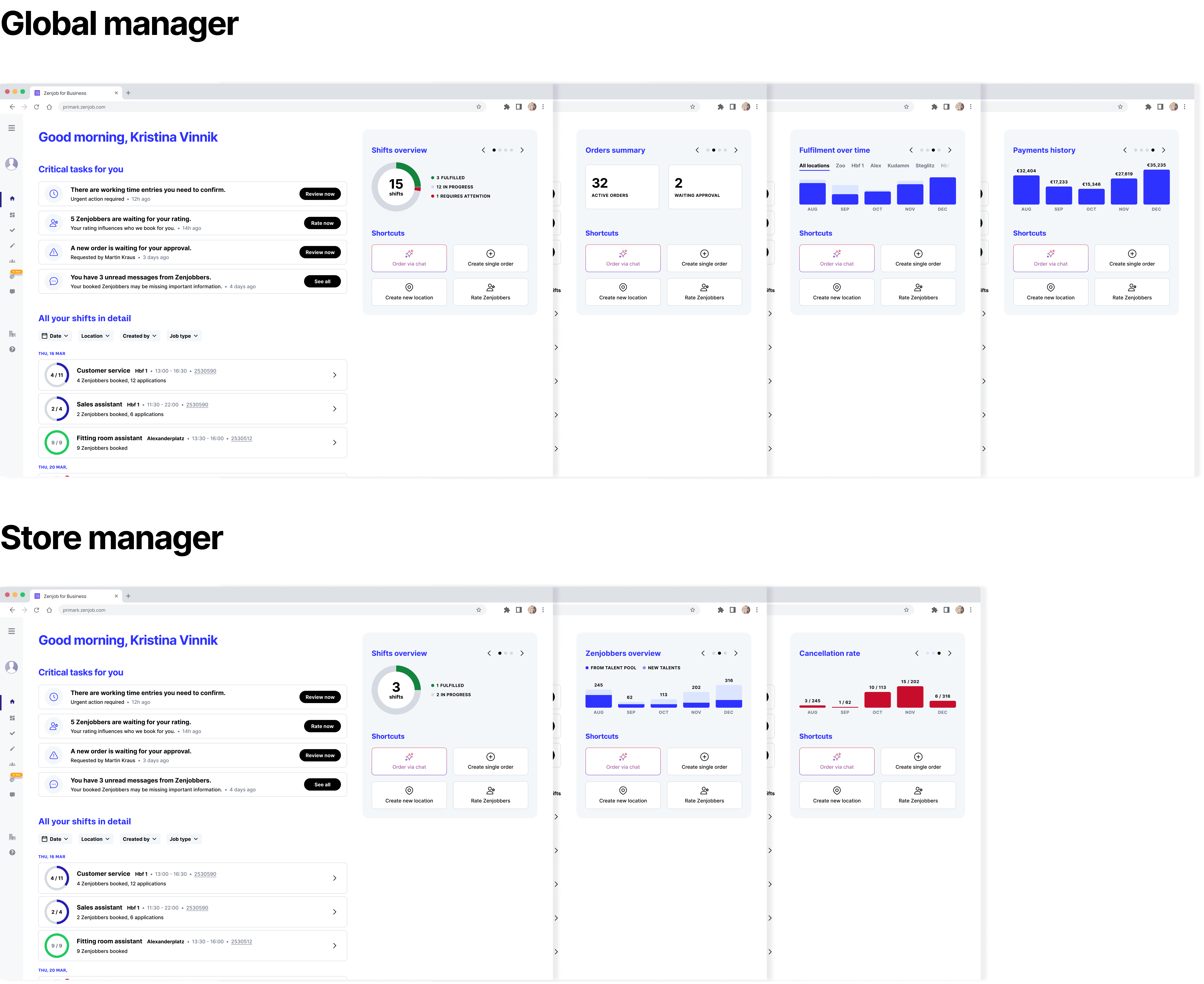 We tailored the shift overview component to reflect the unique needs of global managers vs. store managers.