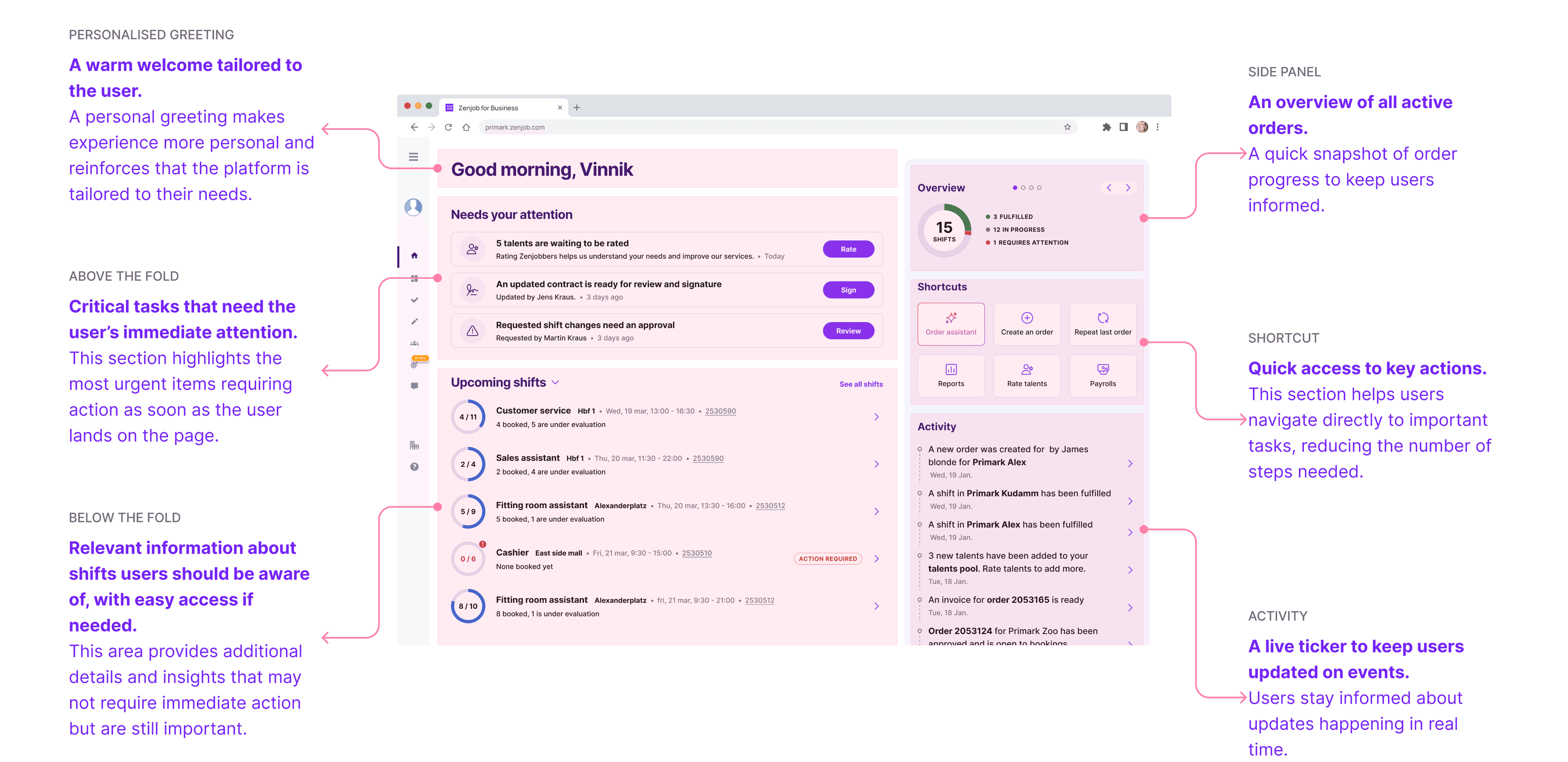 The redesign marked a strategic shift in Zenjob’s B2B experience from reactive fulfillment to proactive workforce planning.